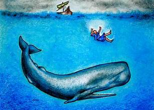 Finally, after giving thanks Jonah says: Okay God, I’ll do what you want me to do. I’ll go preach to those people in Ninevah. And the whale spits Jonah out where he can begin to make his way to Ninevah.